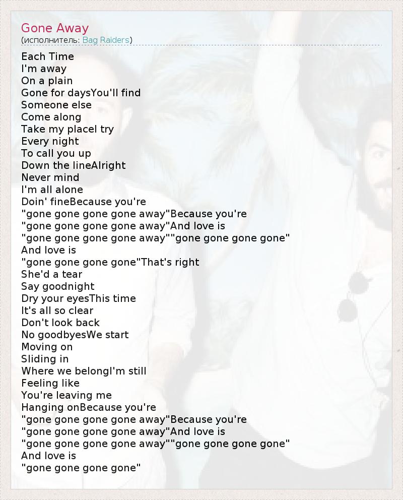 "gone gone gone gone away""gone gone gone gone"