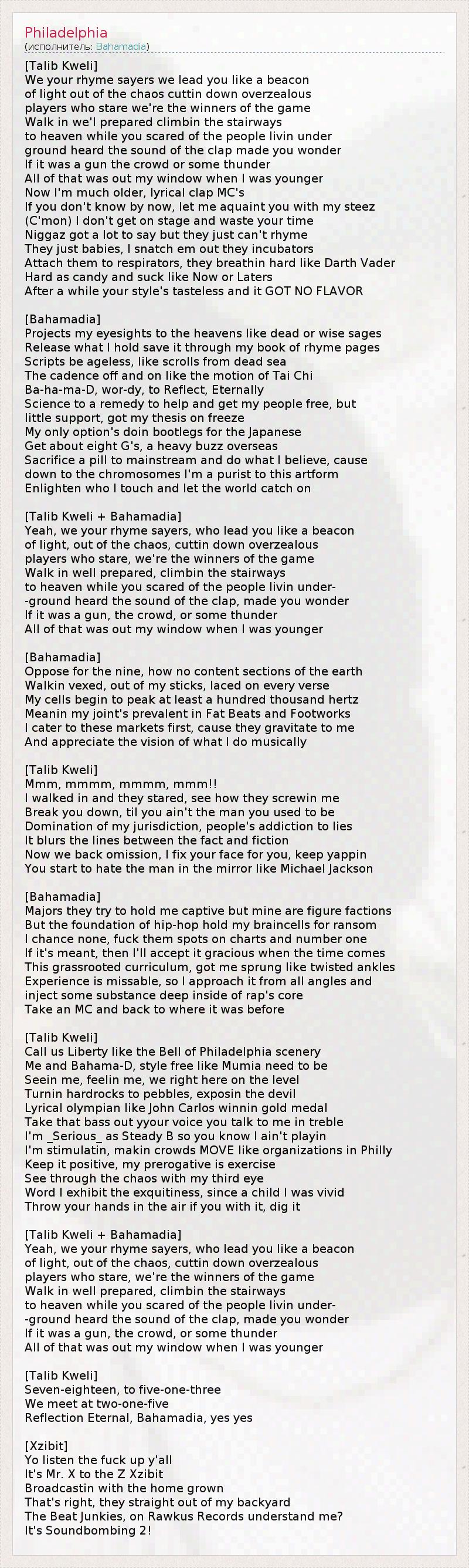 А как ты думаешь, о чем песня "Philadelphia" ?