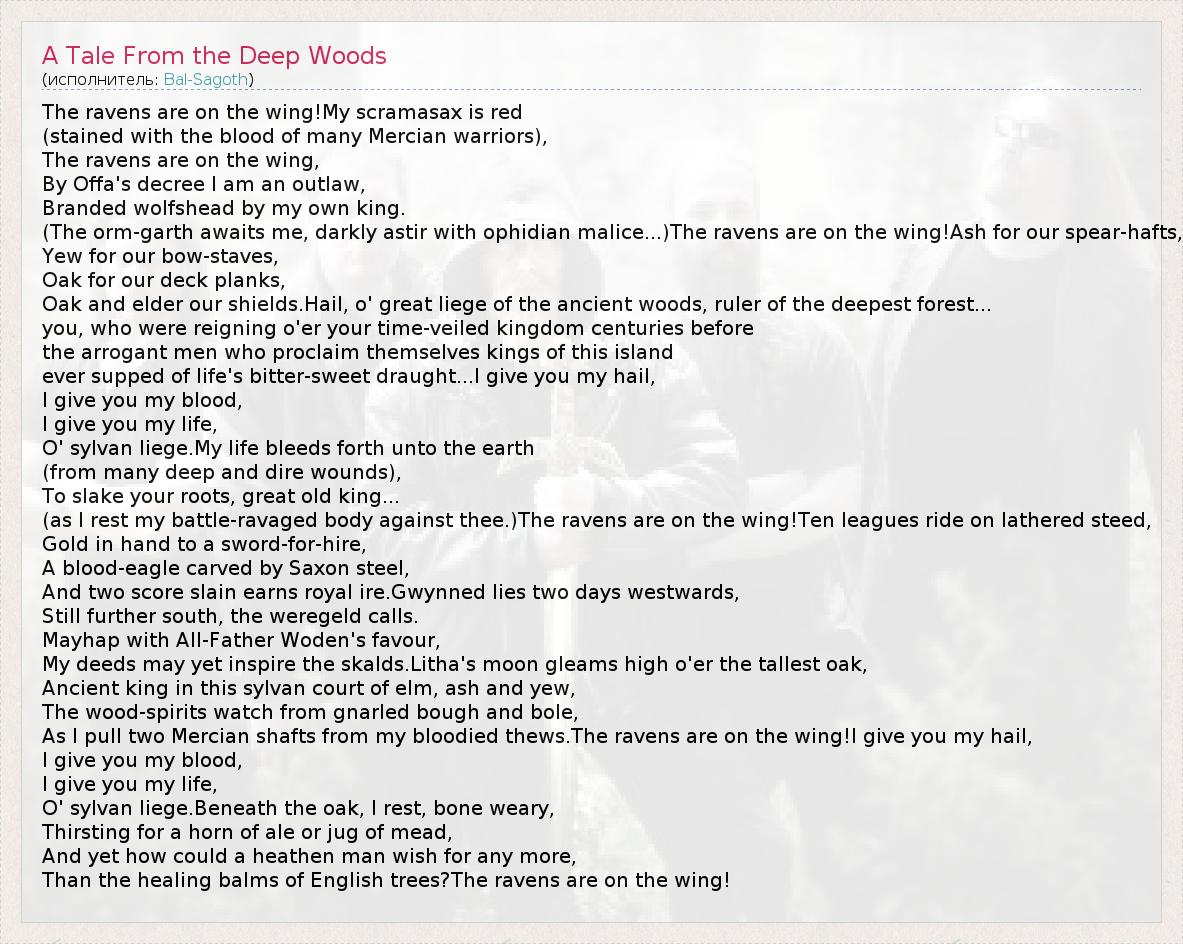 А как ты думаешь, о чем песня "A Tale From the Deep Woods" ?