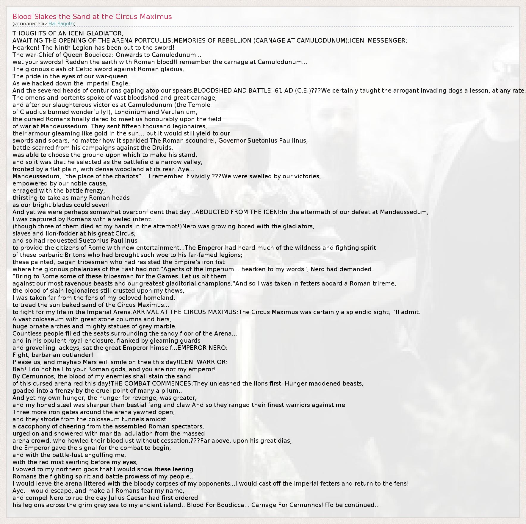 А как ты думаешь, о чем песня "Blood Slakes the Sand at the Circus Maximus" ?