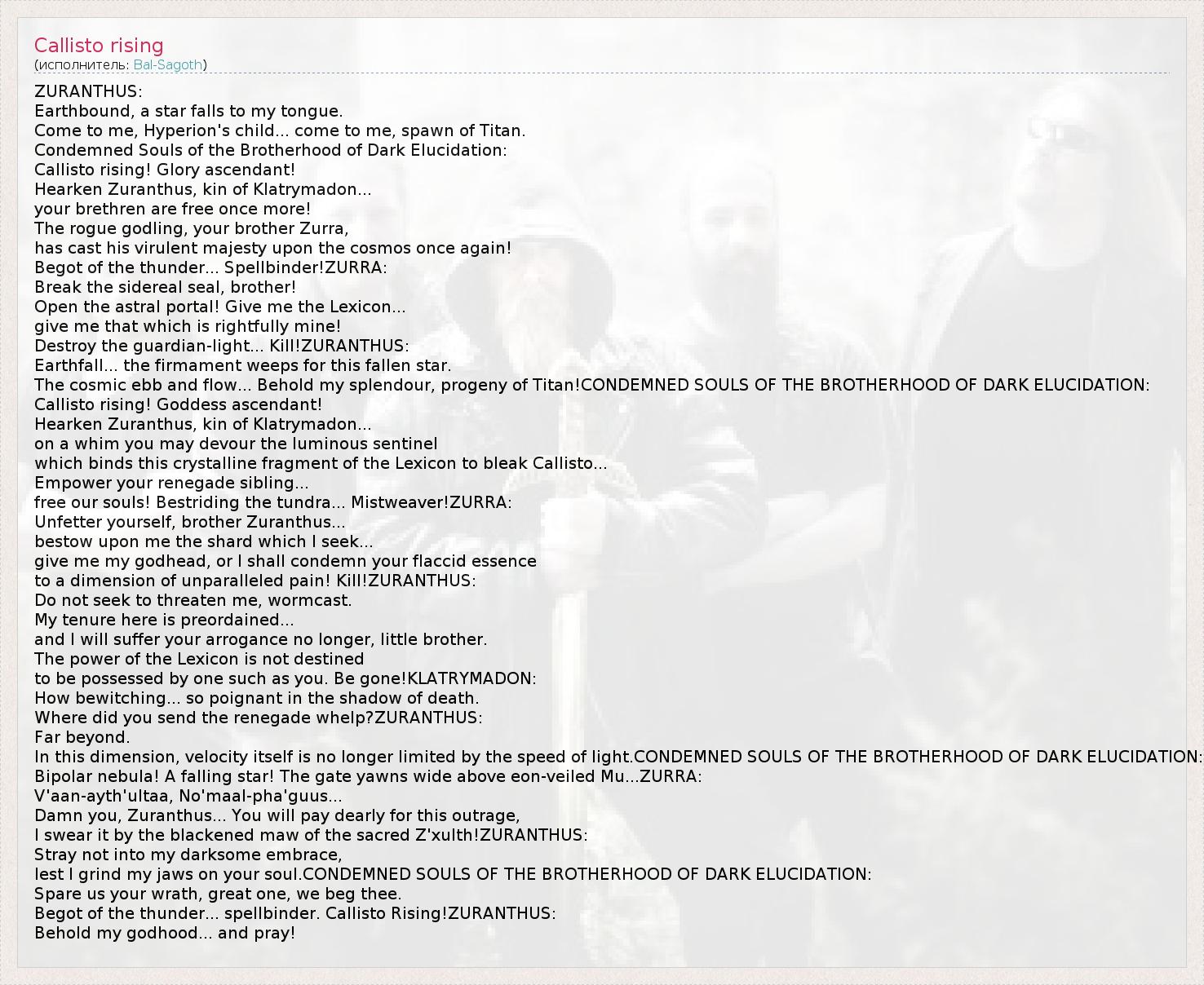 Begot of the thunder... spellbinder. Callisto Rising!ZURANTHUS: