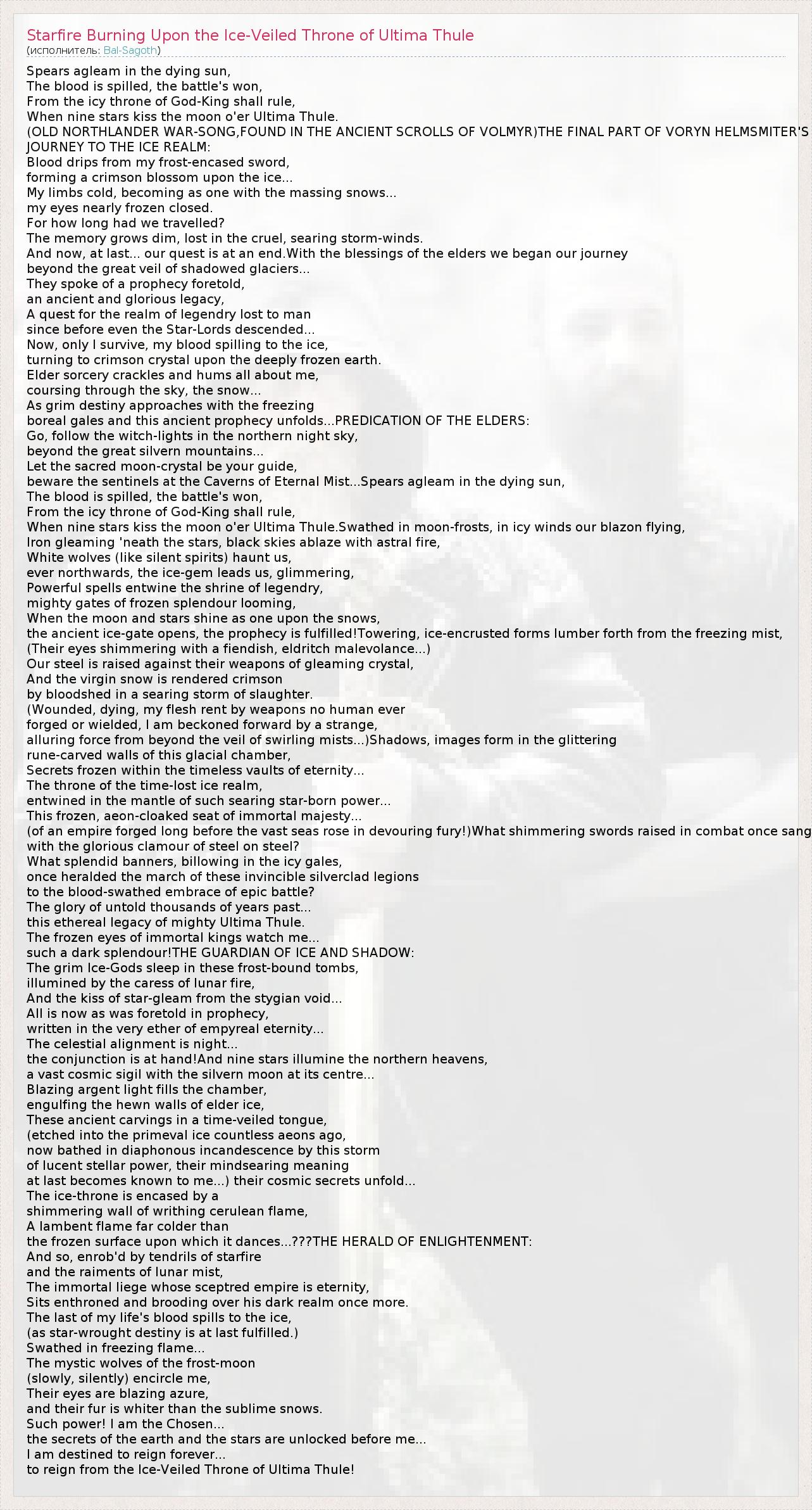 ГлавнаяИсполнителиBal-SagothStarfire Burning Upon the Ice-Veiled Throne of Ultima Thule