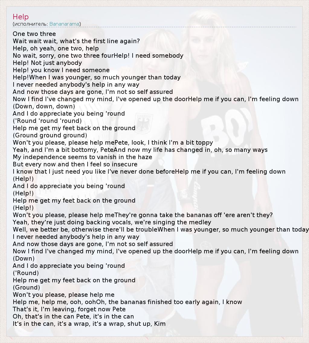 Help me, help me, ooh, oohOh, the bananas finished too early again, I know