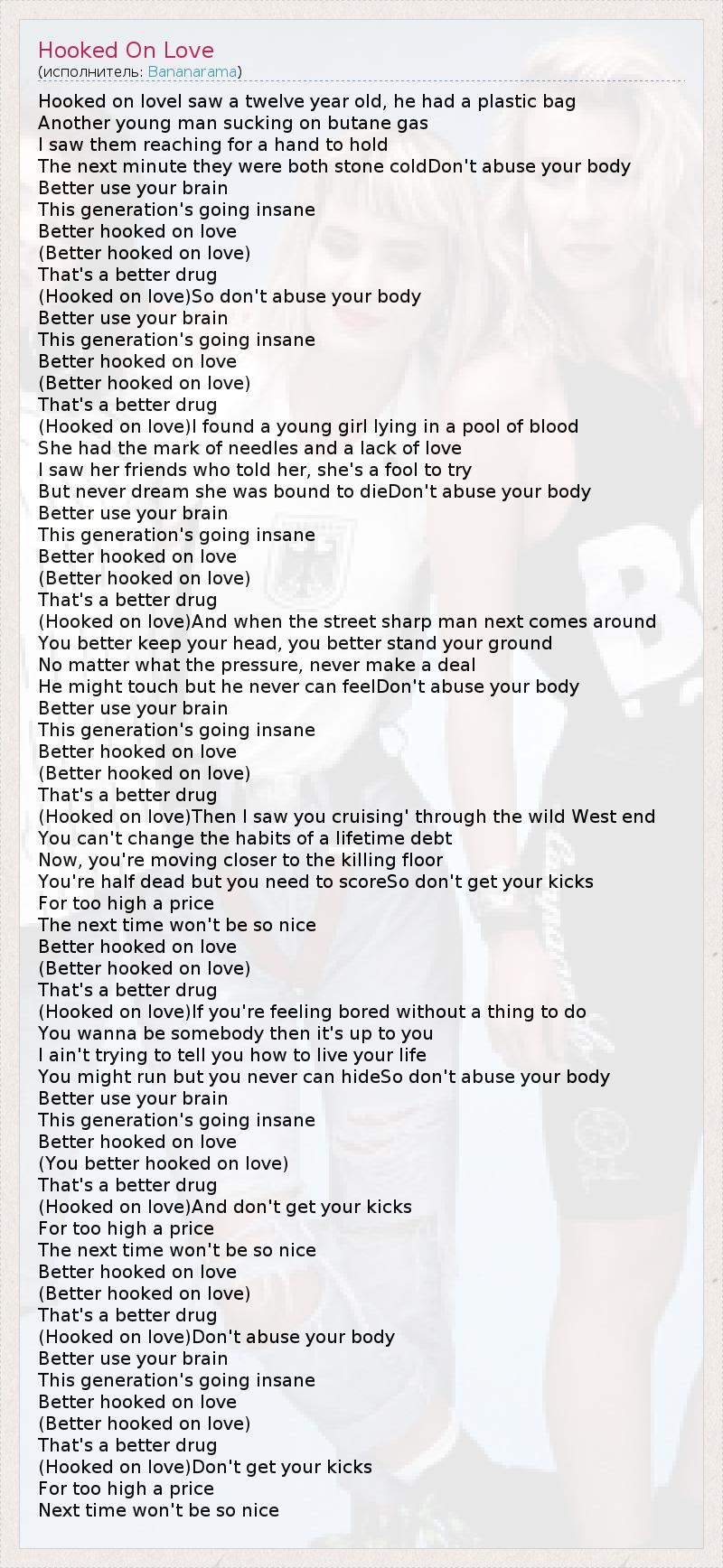 А как ты думаешь, о чем песня "Hooked On Love" ?