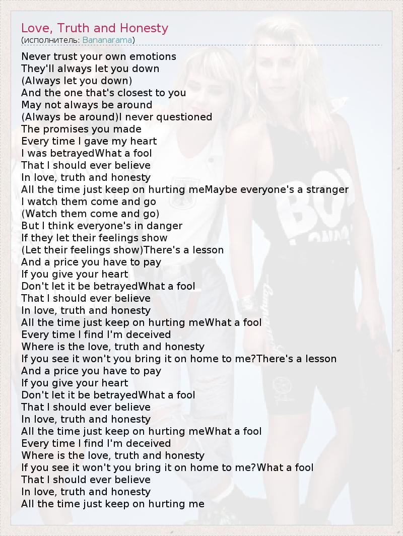 А как ты думаешь, о чем песня "Love, Truth and Honesty" ?