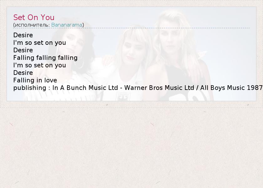 publishing : In A Bunch Music Ltd - Warner Bros Music Ltd / All Boys Music 1987