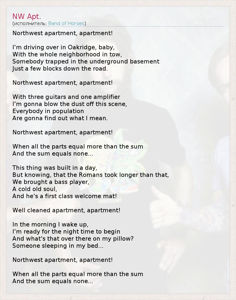 Это интересно:Band Of Horses, предварительно известные как Horses, являются американской инди-рок группой, сформированной в 2004 в Сиэтле Беном Бридвеллом, Матом Бруком, Критоном Барреттом и Робом Хэмптоном. Джо Арнон присоединился к оркестру в феврале 2006. Сейчас группа записывается на Columbia Records. Их часто сравнивают с My Morning Jacket,... продолжение