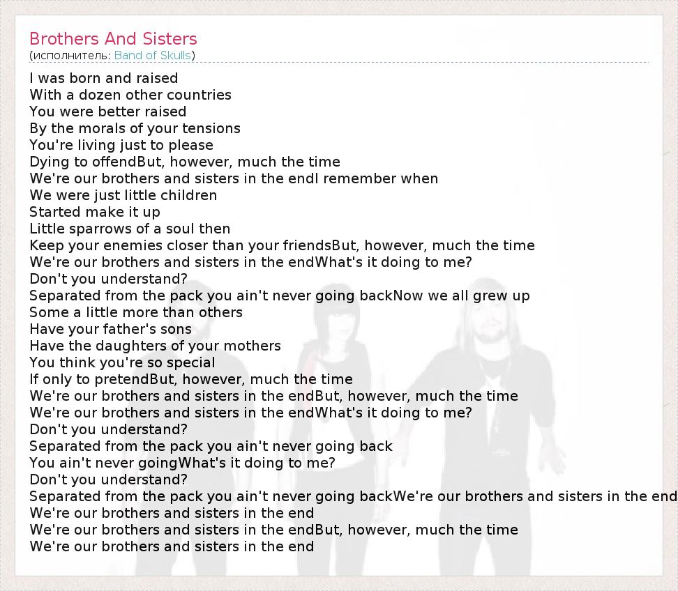 А как ты думаешь, о чем песня "Brothers And Sisters" ?