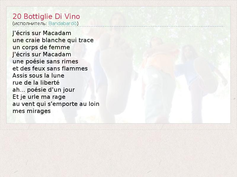 А как ты думаешь, о чем песня "20 Bottiglie Di Vino" ?