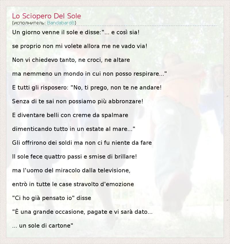 А как ты думаешь, о чем песня "Lo Sciopero Del Sole" ?