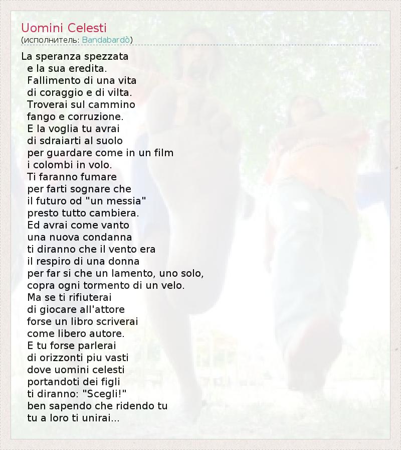 А как ты думаешь, о чем песня "Uomini Celesti" ?