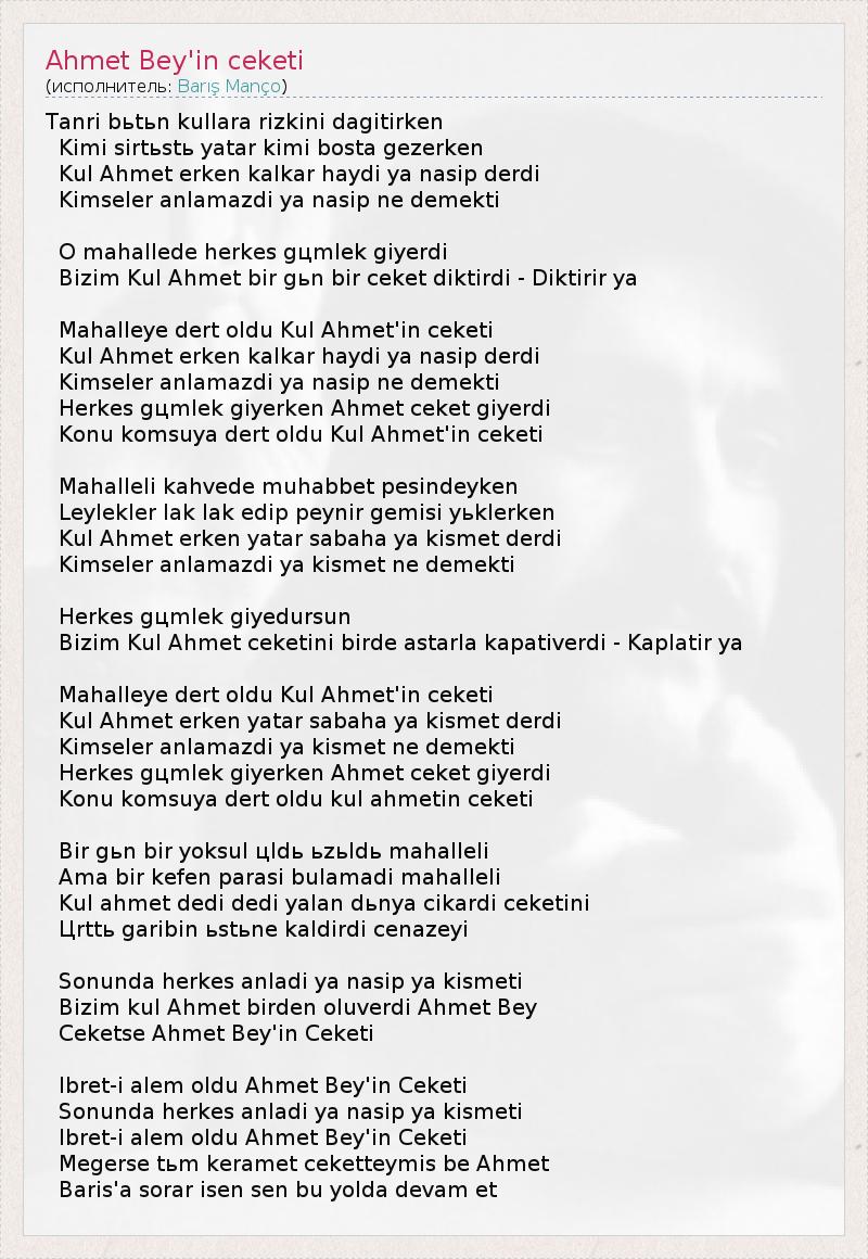 А как ты думаешь, о чем песня "Ahmet Bey'in ceketi" ?