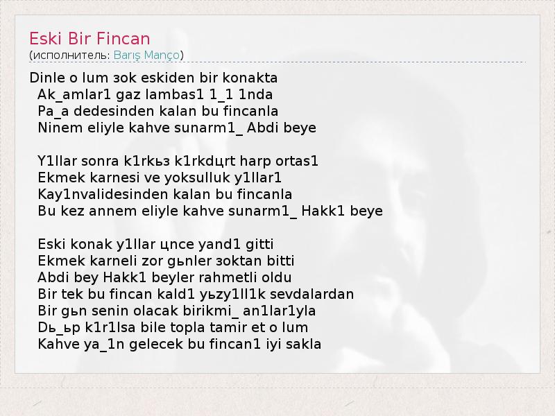 А как ты думаешь, о чем песня "Eski Bir Fincan" ?
