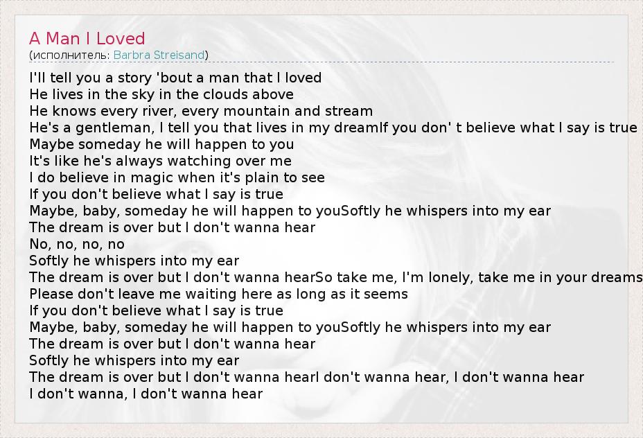 А как ты думаешь, о чем песня "A Man I Loved" ?