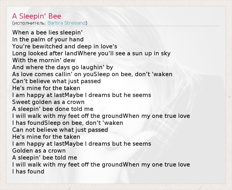 А как ты думаешь, о чем песня "A Sleepin' Bee" ?