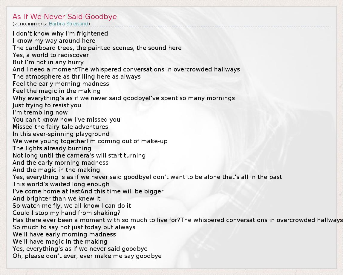 А как ты думаешь, о чем песня "As If We Never Said Goodbye" ?