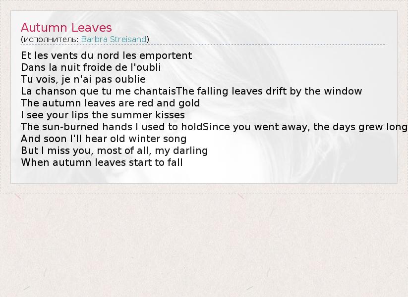 А как ты думаешь, о чем песня "Autumn Leaves" ?