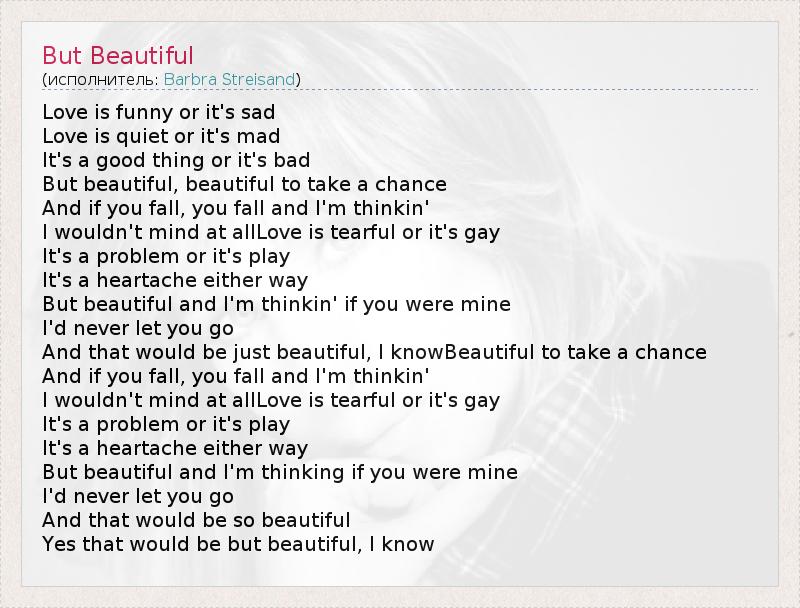 А как ты думаешь, о чем песня "But Beautiful" ?
