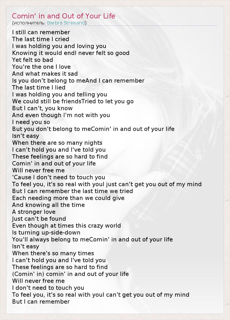 А как ты думаешь, о чем песня "Comin' in and Out of Your Life" ?