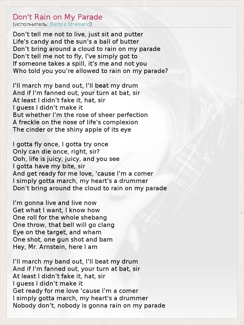 А как ты думаешь, о чем песня "Don't Rain on My Parade" ?