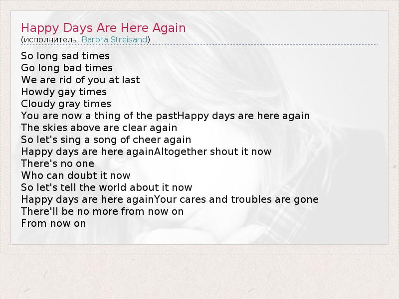 А как ты думаешь, о чем песня "Happy Days Are Here Again" ?