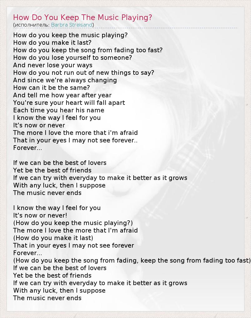 А как ты думаешь, о чем песня "How Do You Keep The Music Playing?" ?