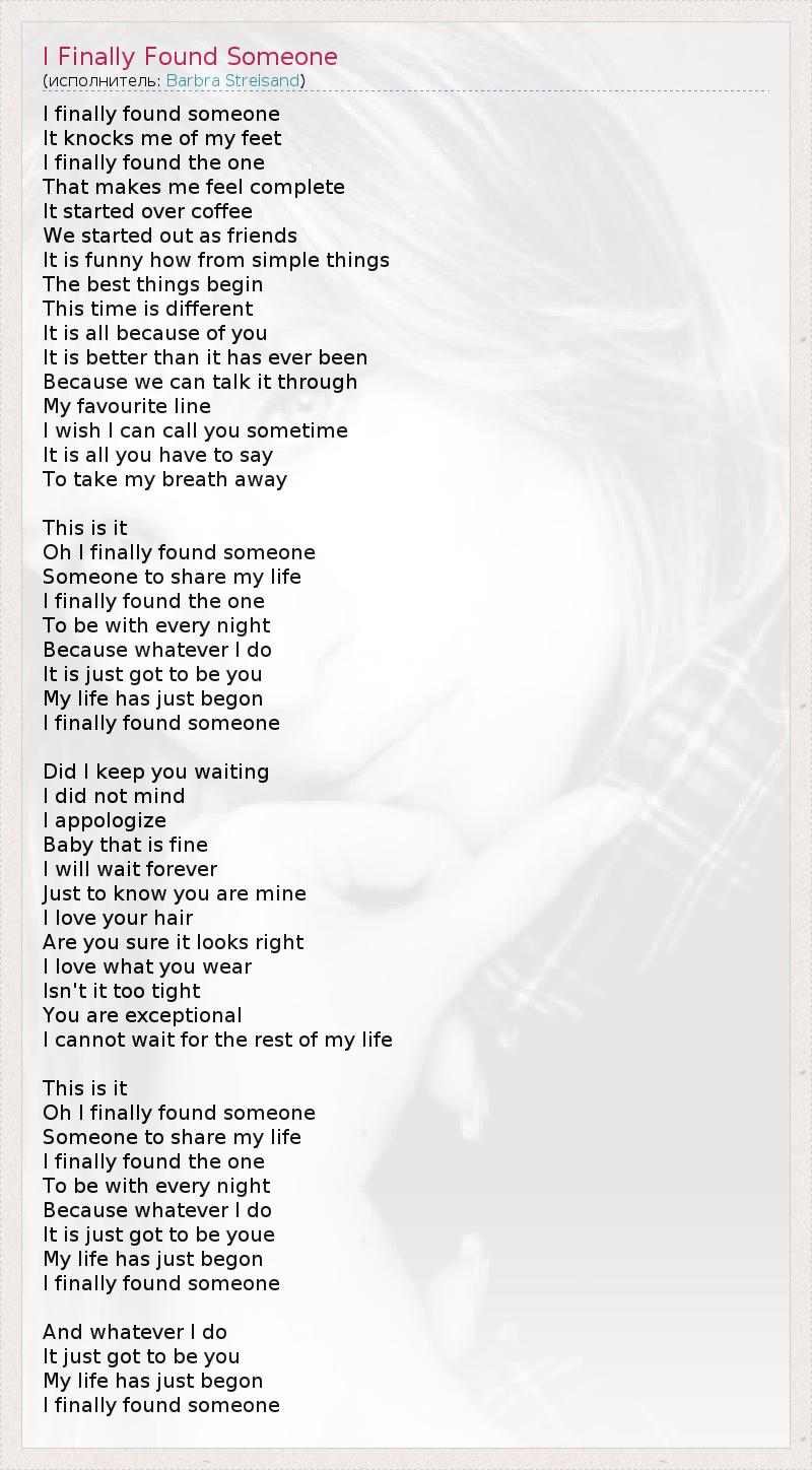 А как ты думаешь, о чем песня "I Finally Found Someone" ?