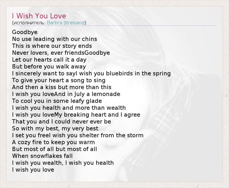 А как ты думаешь, о чем песня "I Wish You Love" ?