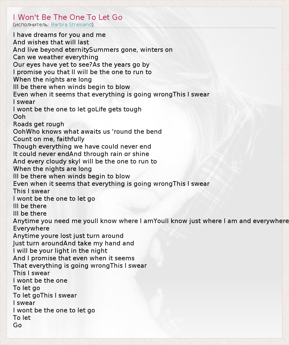 ГлавнаяИсполнителиBarbra StreisandI Won't Be The One To Let Go
