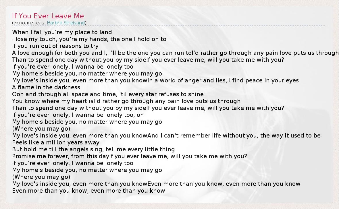 А как ты думаешь, о чем песня "If You Ever Leave Me" ?