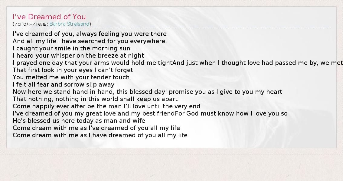 А как ты думаешь, о чем песня "I've Dreamed of You" ?