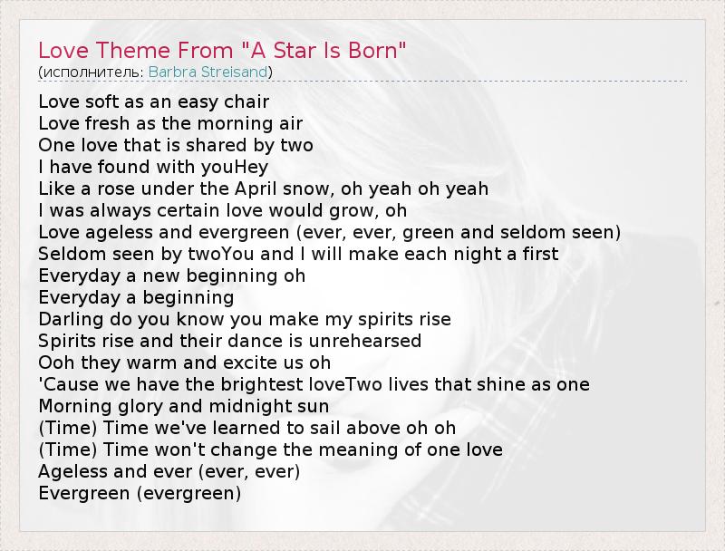 А как ты думаешь, о чем песня "Love Theme From "A Star Is Born"" ?
