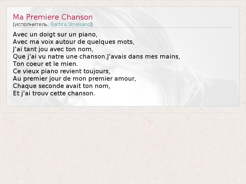 А как ты думаешь, о чем песня "Ma Premiere Chanson" ?
