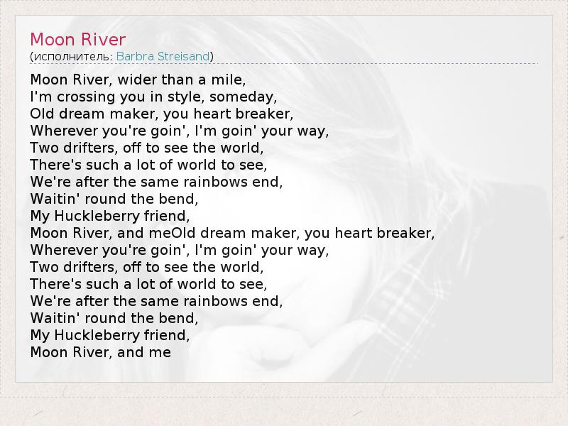 Moon River, and meOld dream maker, you heart breaker,