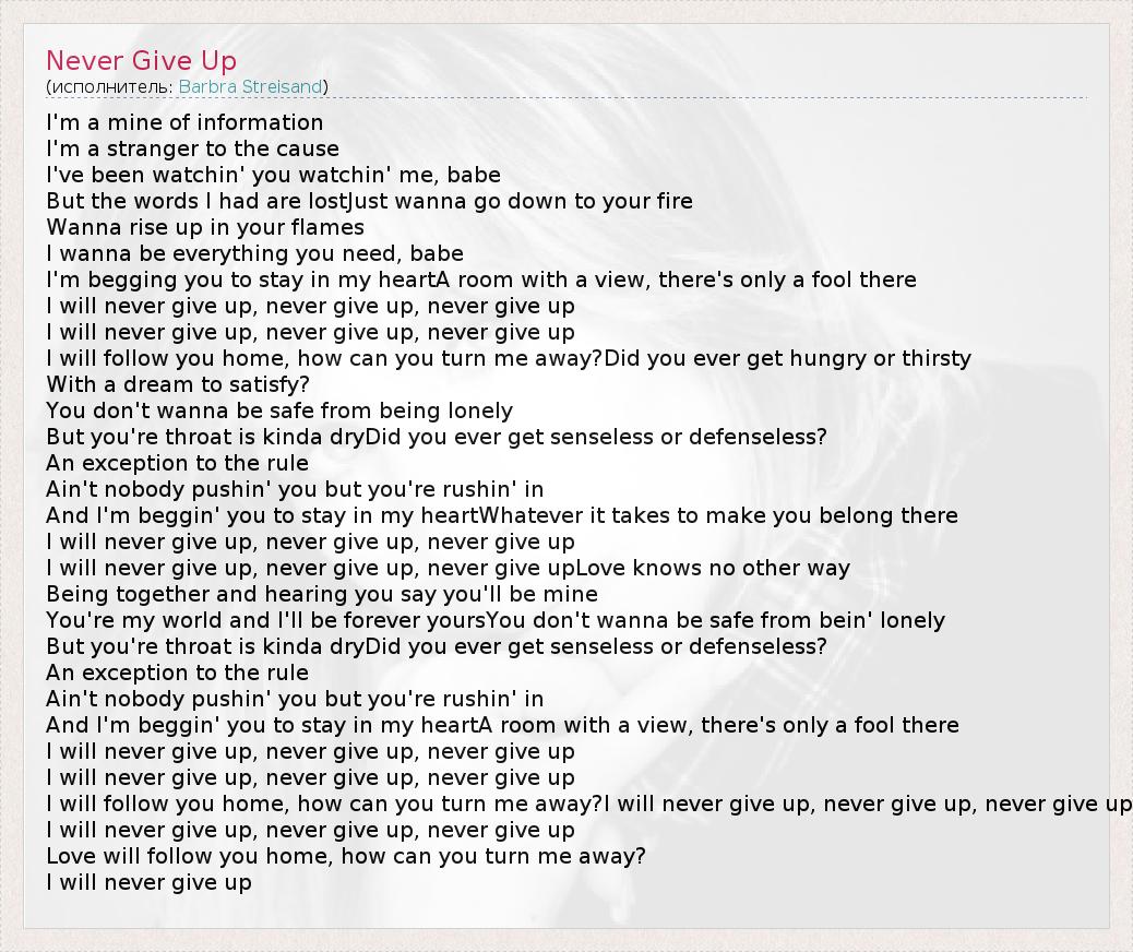 А как ты думаешь, о чем песня "Never Give Up" ?