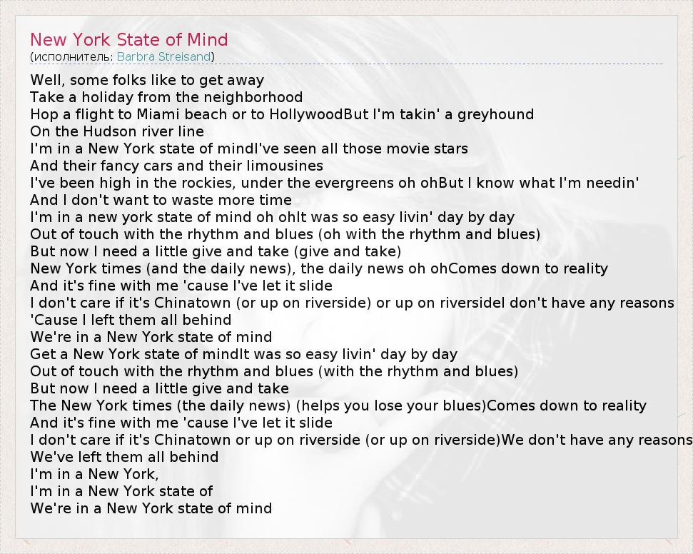 А как ты думаешь, о чем песня "New York State of Mind" ?