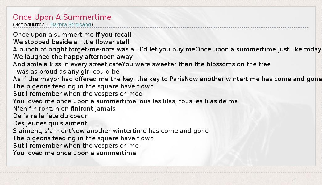А как ты думаешь, о чем песня "Once Upon A Summertime" ?