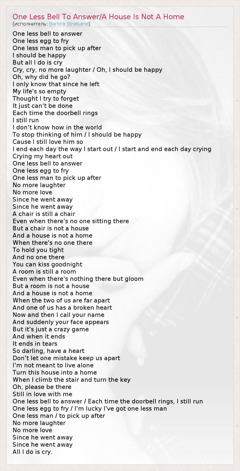А как ты думаешь, о чем песня "One Less Bell To Answer/A House Is Not A Home" ?