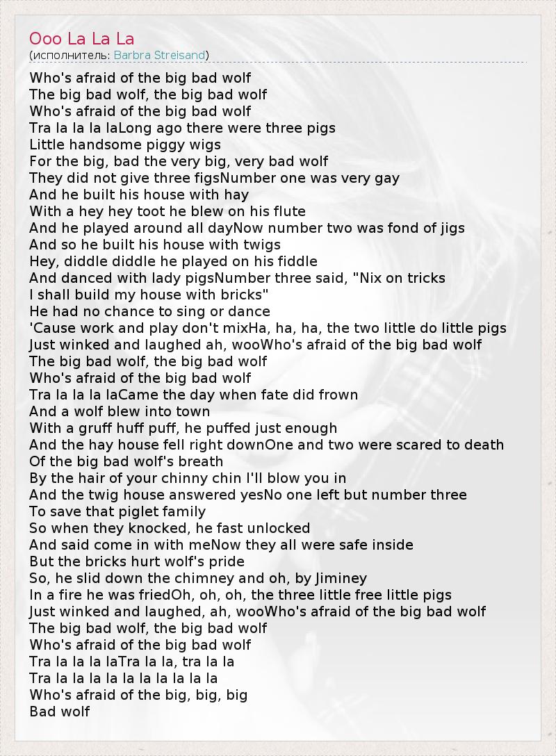 Just winked and laughed, ah, wooWho's afraid of the big bad wolf