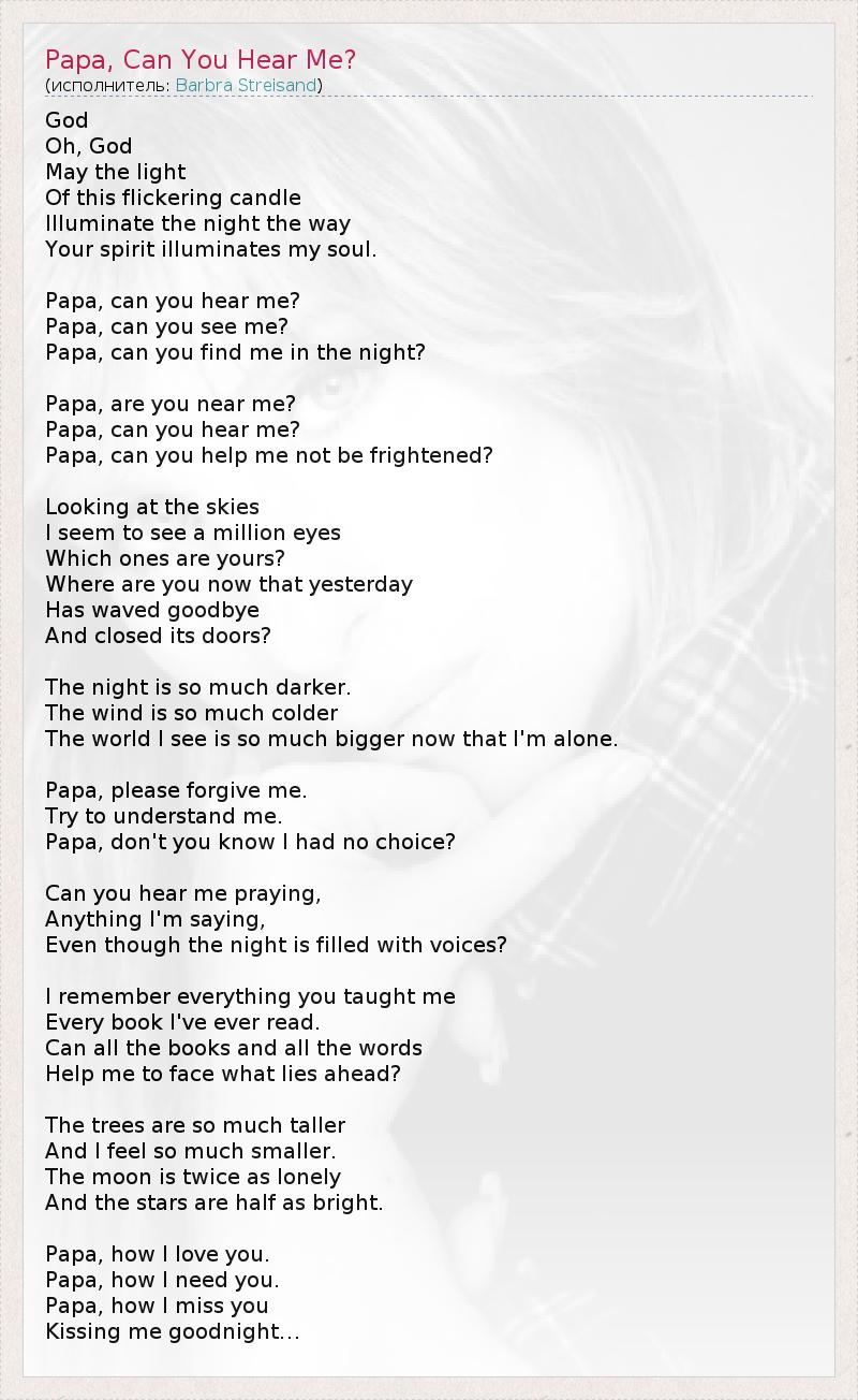 А как ты думаешь, о чем песня "Papa, Can You Hear Me?" ?