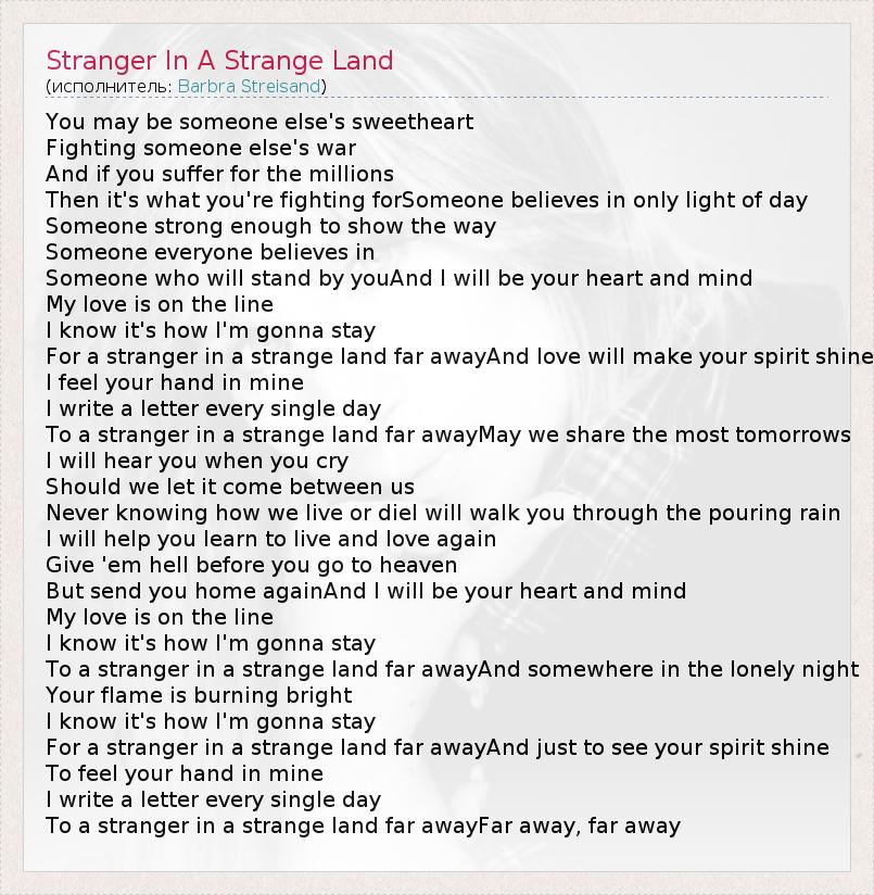 А как ты думаешь, о чем песня "Stranger In A Strange Land" ?