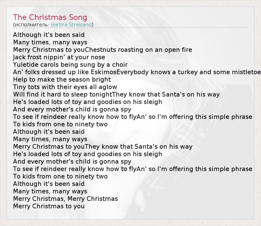 А как ты думаешь, о чем песня "The Christmas Song" ?