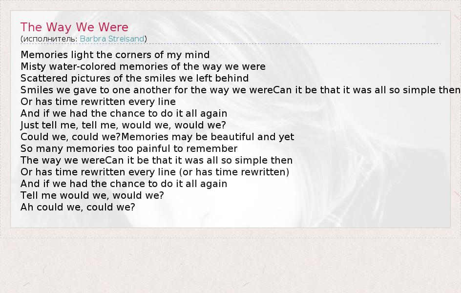 А как ты думаешь, о чем песня "The Way We Were" ?