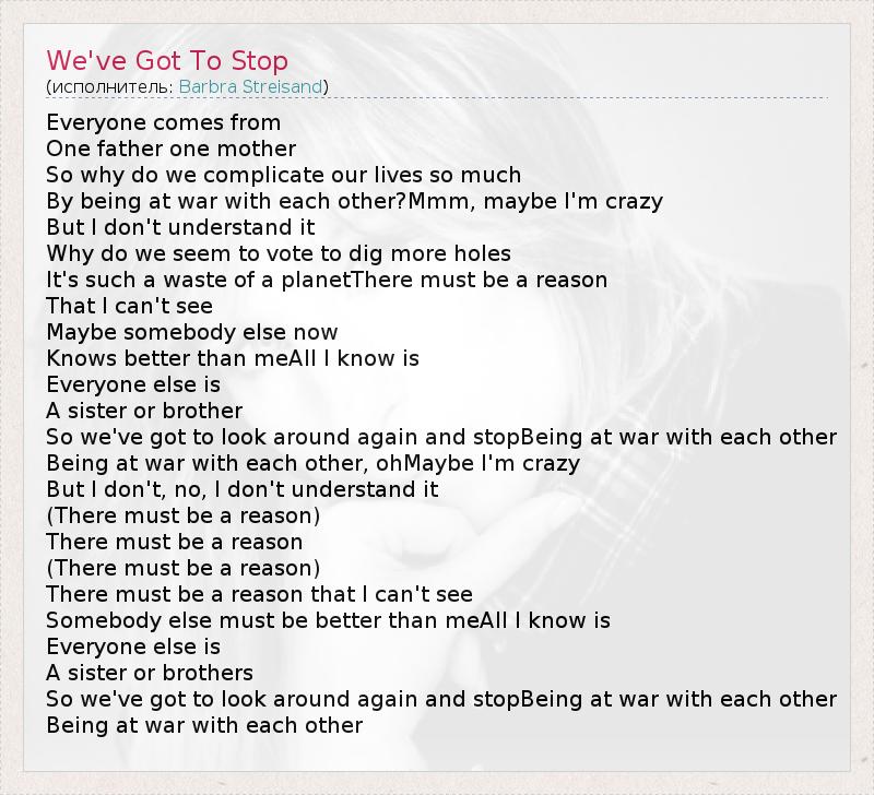 А как ты думаешь, о чем песня "We've Got To Stop" ?