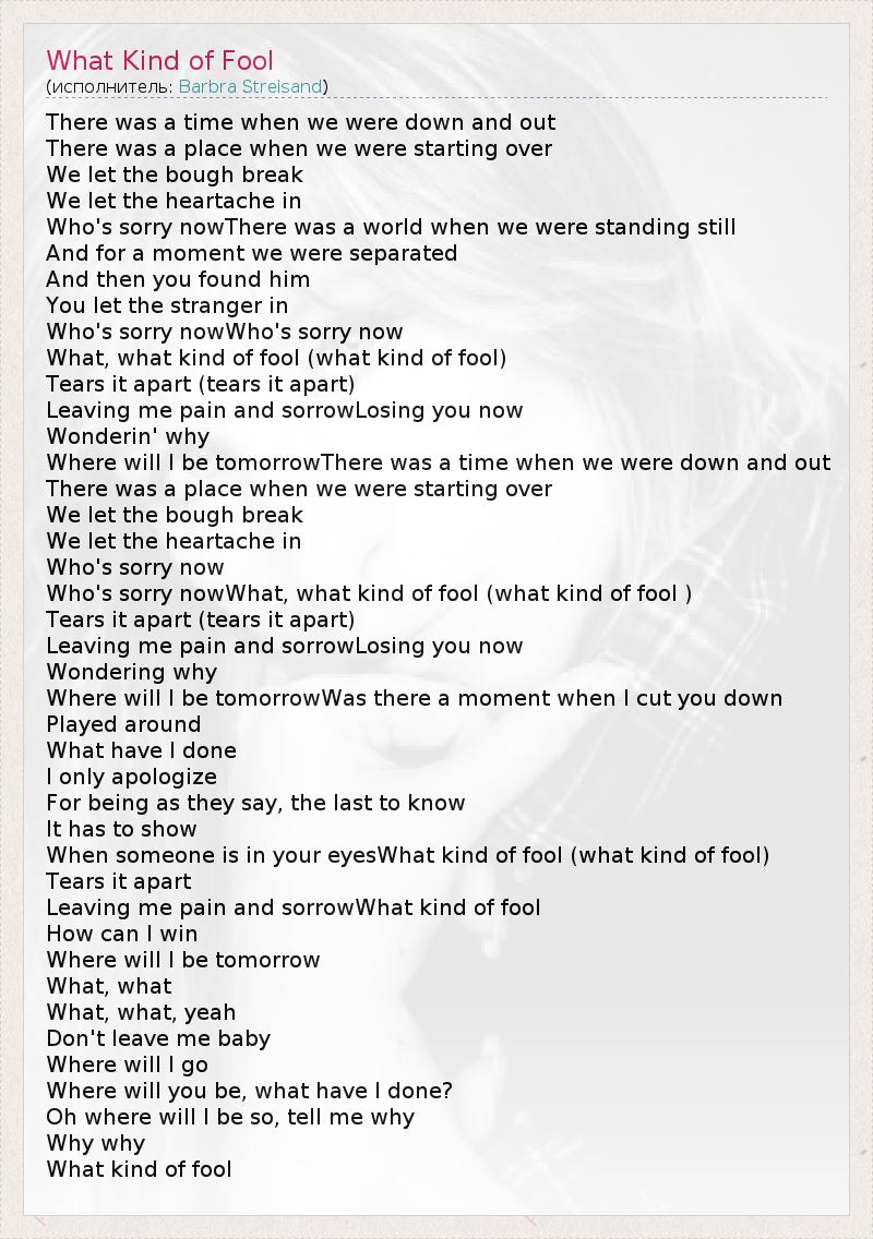 А как ты думаешь, о чем песня "What Kind of Fool" ?