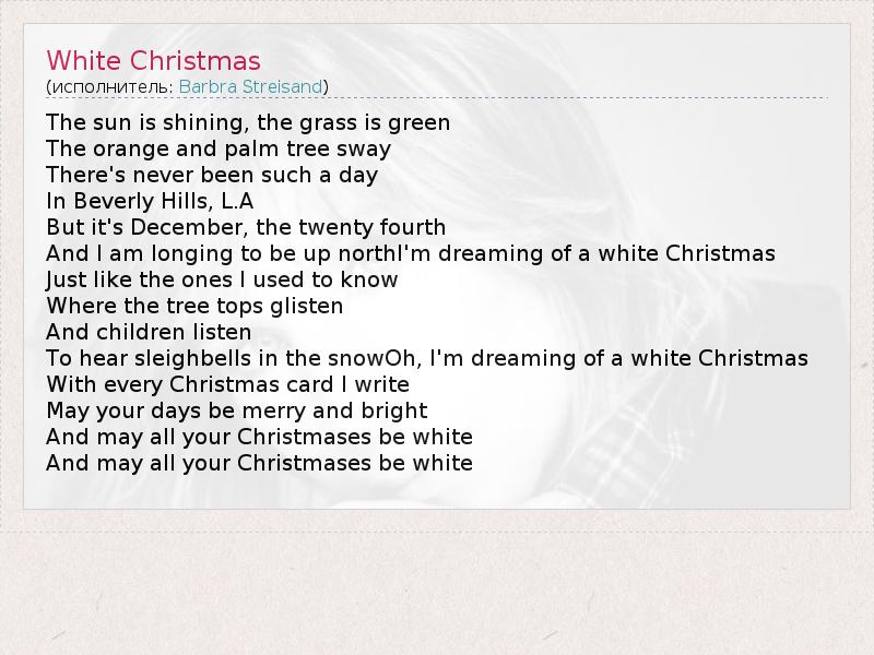 To hear sleighbells in the snowOh, I'm dreaming of a white Christmas