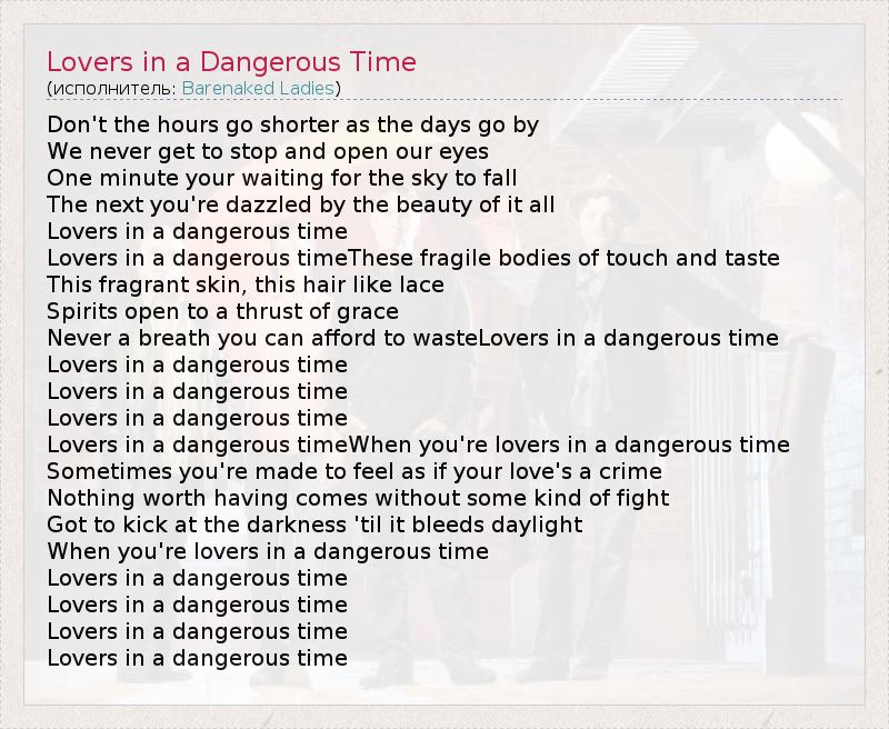 Lovers in a dangerous timeWhen you're lovers in a dangerous time