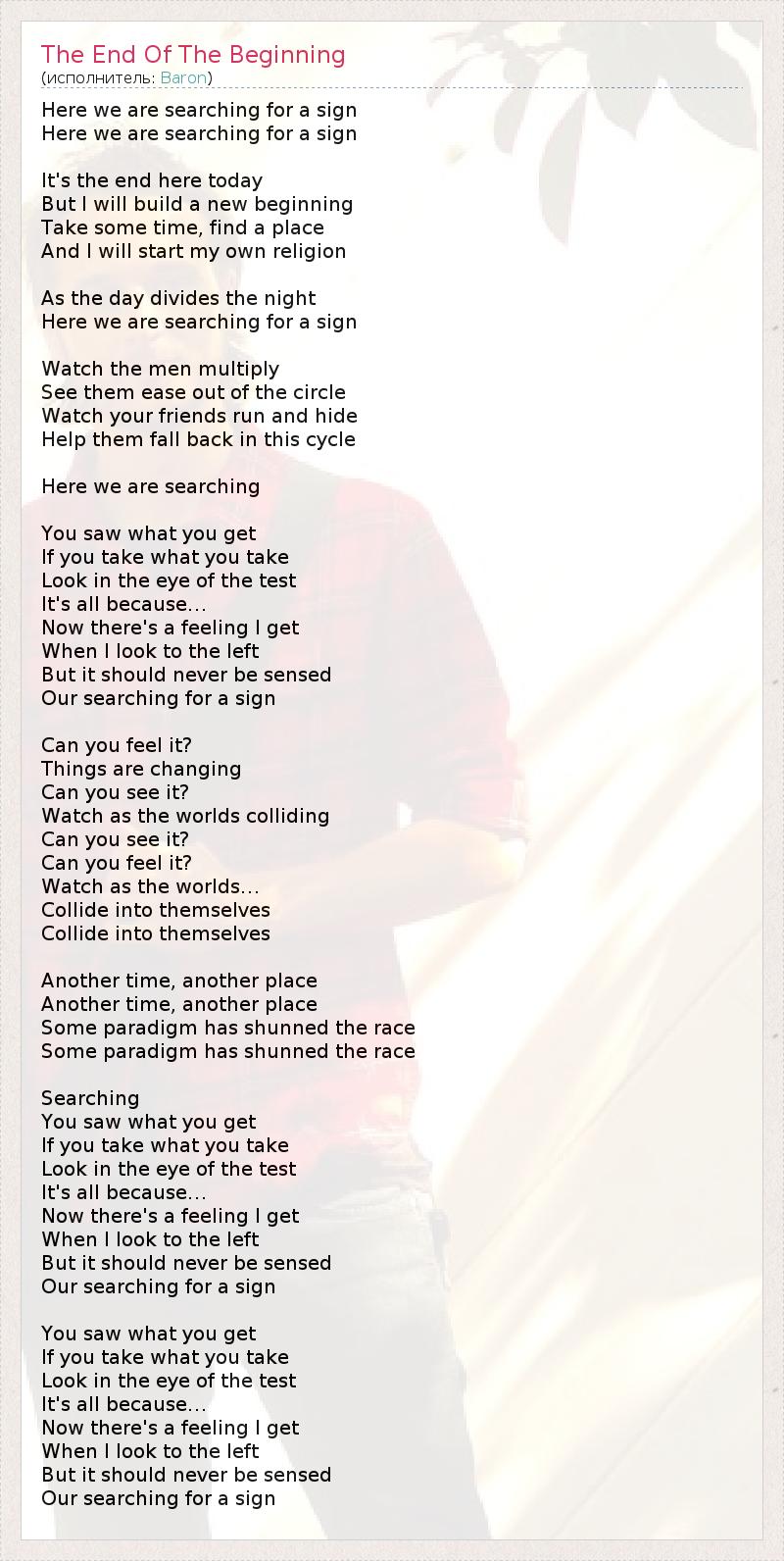А как ты думаешь, о чем песня "The End Of The Beginning" ?