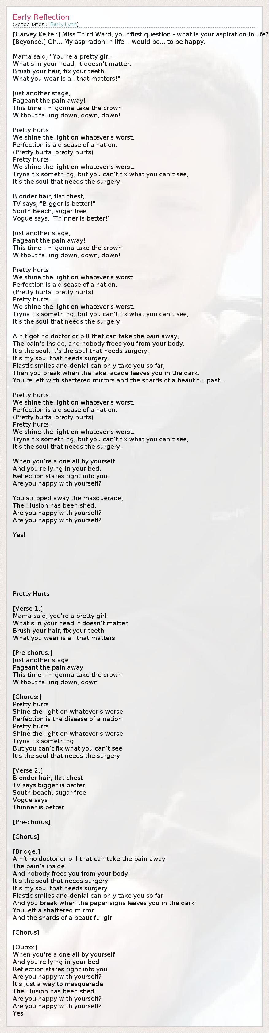 А как ты думаешь, о чем песня "Early Reflection" ?