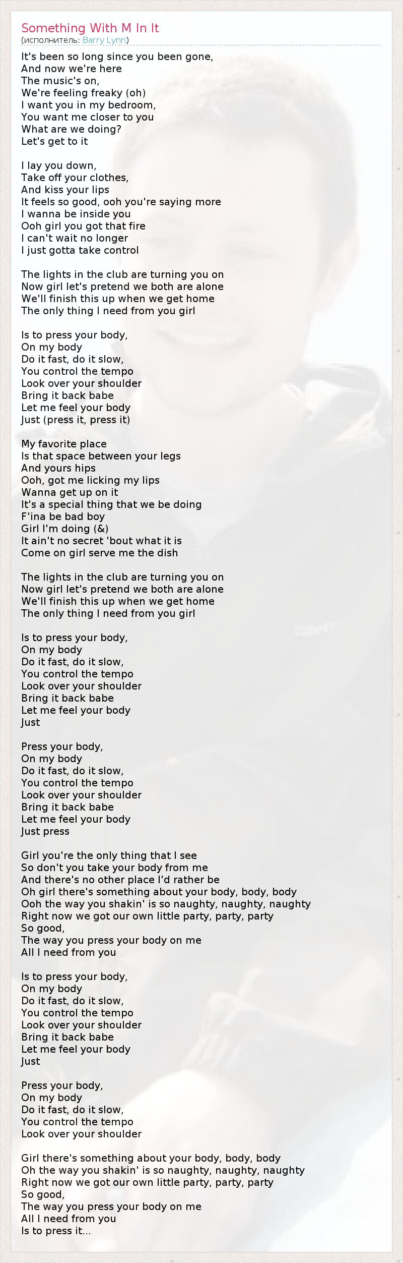 ГлавнаяИсполнителиBarry LynnSomething With M In It